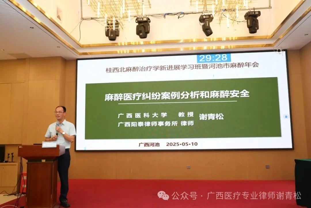 普法宣传|谢青松教授应邀为河池市麻醉年会进行麻醉安全讲座